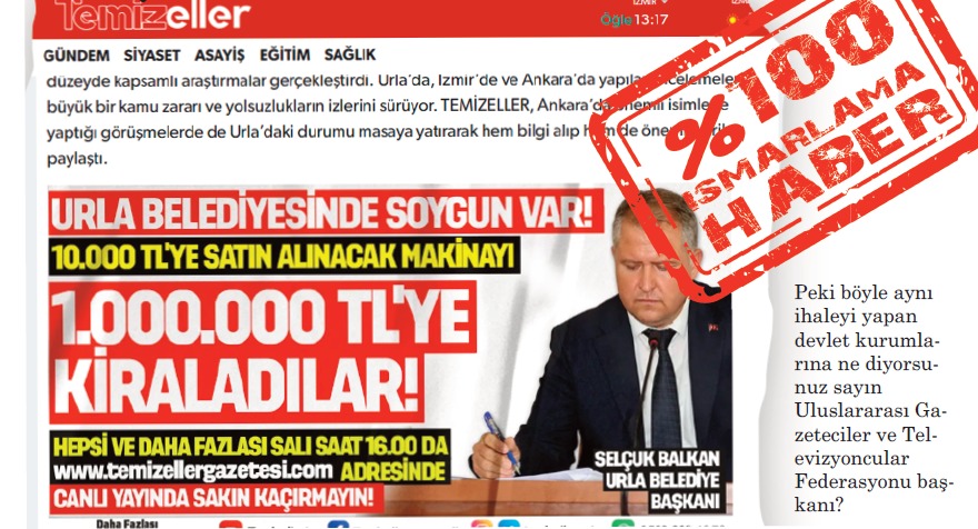 İşte bakın, bu günlerce anons yapıp, sonunda Urla Belediyesi’nin yapmış olduğu fotokopi, ozalit vesaire ihalesini ortaya atarak sözüm ona büyük bir yolsuzluk ortaya çıkarmış gibi bir yayın yaparak, sözde halkın hakkını korudular. Ama esas amaç, belediyenin onları muhatap alıp anlaşmamaları olduğu açık!
